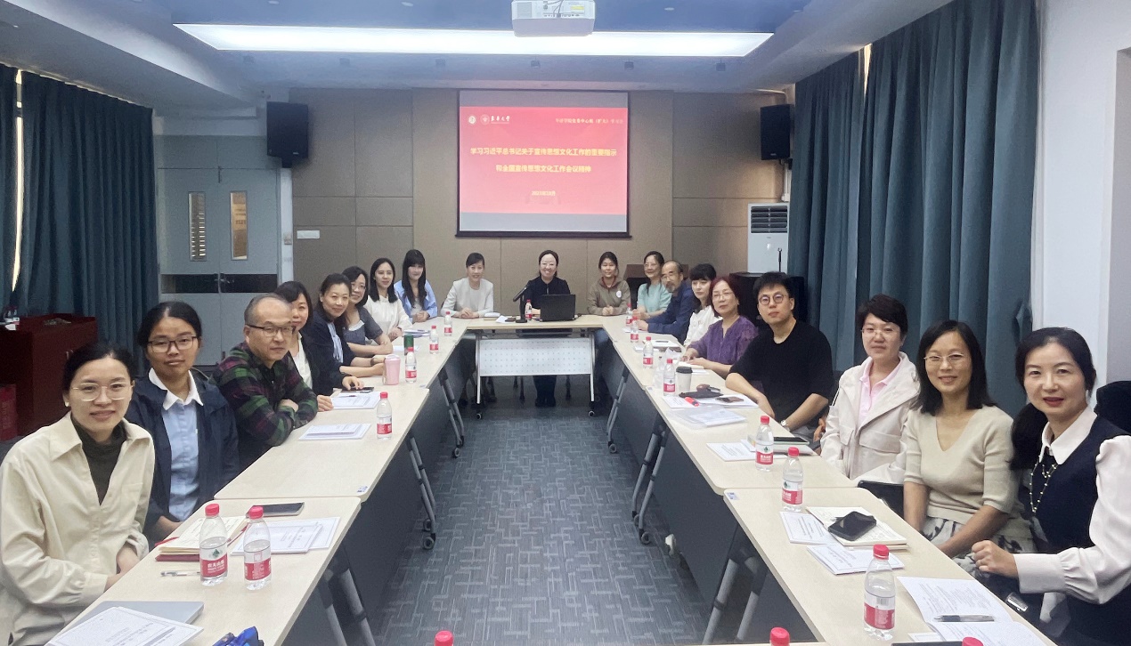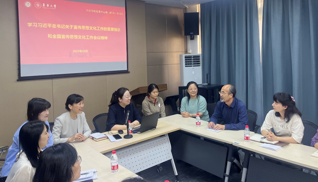 参会教师结合工作交流了学习体会,大家表示在今后的工作中将继续坚持以习近平文化思想为指引,切实担负起新时代高校教师的文化使命,展现新气象,做出新作为。
